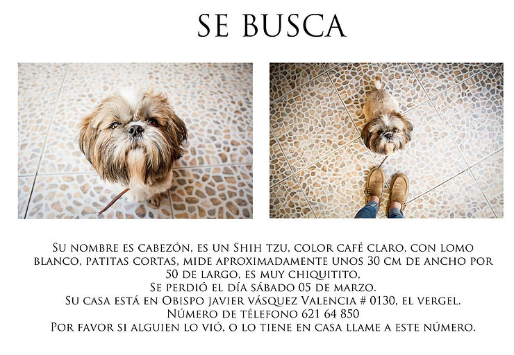Perrita Shih tzu, 3 años. Color blanco con café. desaparecida el 2 de marzo en La Reina. Tiene el pelo corto, un dedo extra en sus patitas traseras y la cara chatita. Está chipeada, pero no tenía collar.
